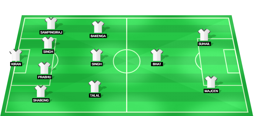 Kiran (GK), Shabong (DF), Prabhu (DF), Singh (DF), Sampingiraj (DF), Talal (MF), Singh (MF), Bakenga (MF), Bhat (AM), Majcen (FW), Suhail (FW)