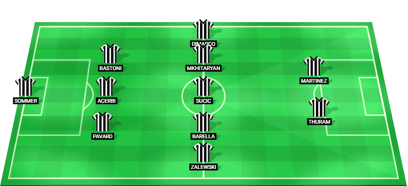 Sommer (GK), Pavard (DF), Acerbi (DF), Bastoni (DF), Zalewski (MF), Barella (MF), Sucic (MF), Mkhitaryan (MF), Dimarco (MF), Thuram (FW), Martinez (FW).