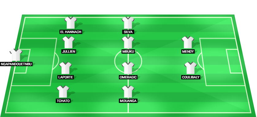 Ngapandouetnbu (GK), Tchato (DF), Laporte (DF), Jullien (DF), El Hannach (DF), Mouanga (MF), Omeragic (MF), Mbuku (MF), Pereira da Silva (MF), Coulibaly (FW), Mendy (FW)
