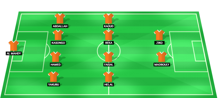 Al Mahdy (GK), Yakubu (DF), Hamed (DF), Kasongo (DF), Abdallah (DF), Helal (MF), Faisal (MF), Beka (MF), Kaoud (MF), Madbouly (FW), Ziko (FW).