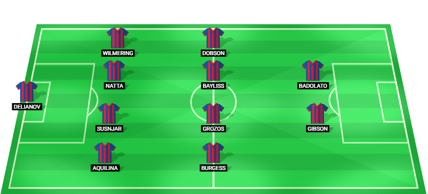 Delianov (GK), Aquilina (DF), Susnjar (DF), Natta (DF), Wilmering (DF), Burgess (MF), Grozos (MF), Bayliss (MF), Dobson (MF), Gibson (FW), Badolato (FW).