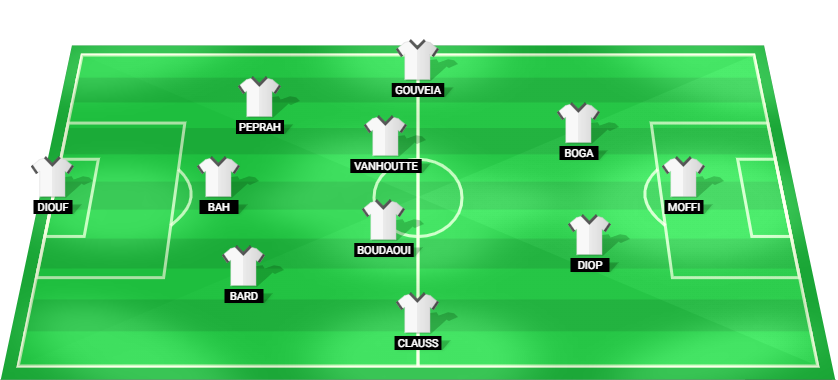 Diouf (GK), Bard (DF), Bah (DF), Peprah (DF), Clauss (MF), Boudaoui (MF), Vanhoutte (MF), Gouveia (MF), Diop (AM), Boga (AM), Moffi (FW)