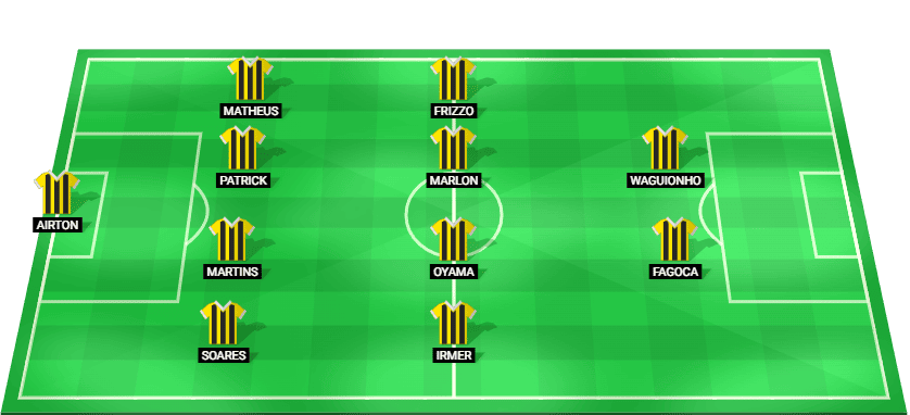Airton (GK), Soares (DF), Martins (DF), Patrick (DF), Matheus (DF), Irmer (MF), Oyama (MF), Marlon (MF), Frizzo (MF), Fagoca (FW), Waguionho (FW).