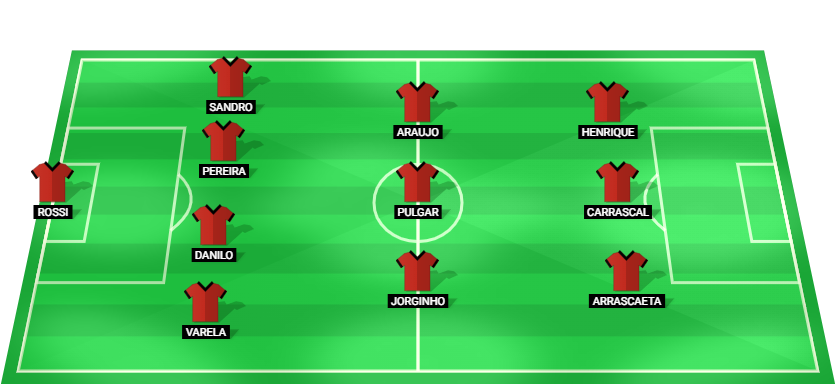Rossi (GK), Varela (DF), Danilo (DF), Pereira (DF), Sandro (DF), Jorginho (MF), Pulgar (MF), Araujo (MF), Arrascaeta (FW), Carrascal (FW), Henrique (FW).