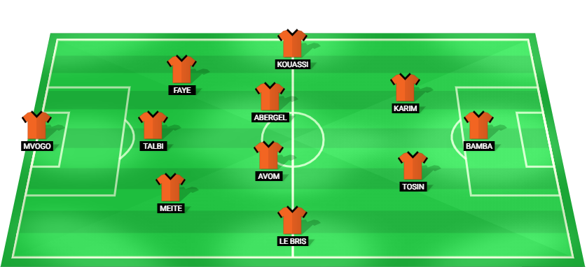Mvogo (GK), Meite (DF), Talbi (DF), Faye (DF), Le Bris (MF), Avom (MF), Abergel (MF), Kouassi (MF), Tosin (AM), Karim (AM), Bamba (FW)