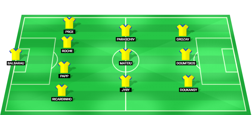 Balbarau (GK), Ricardinho (DF), Papp (DF), Roche (DF), Prce (DF), Jyry (MF), Mateiu (MF), Paraschiv (MF), Doukansy (FW), Doumtsios (FW), Grozav (FW)