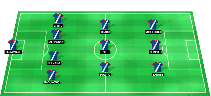 Tarnovanu (GK), Radunovic (DF), Ngezana (DF), Alhassan (DF), Cretu (DF), Politic (MF), Sut (MF), Olaru (MF), Tanase (MF), Chisotti (FW), Miculescu (FW).