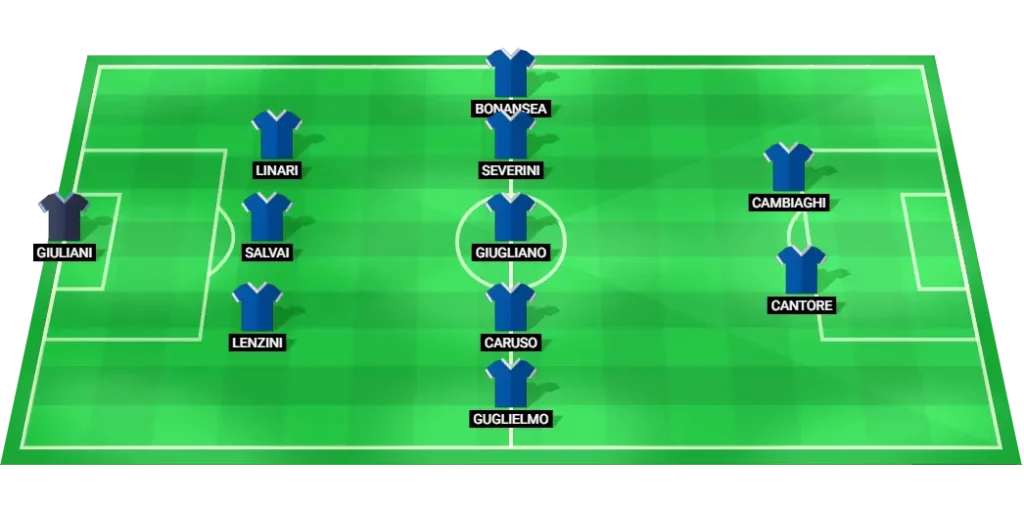 Italy Women Predicted Lineup (3-5-2): L. Giuliani (GK), M. Lenzini (DF), C. Salvai (DF), E. Linari (DF), L. D. Guglielmo (MF), A. Caruso (MF), M. Giugliano (MF), E. Severini (MF), B. Bonansea (MF), S. Cantore (FW), M. Cambiaghi (FW)