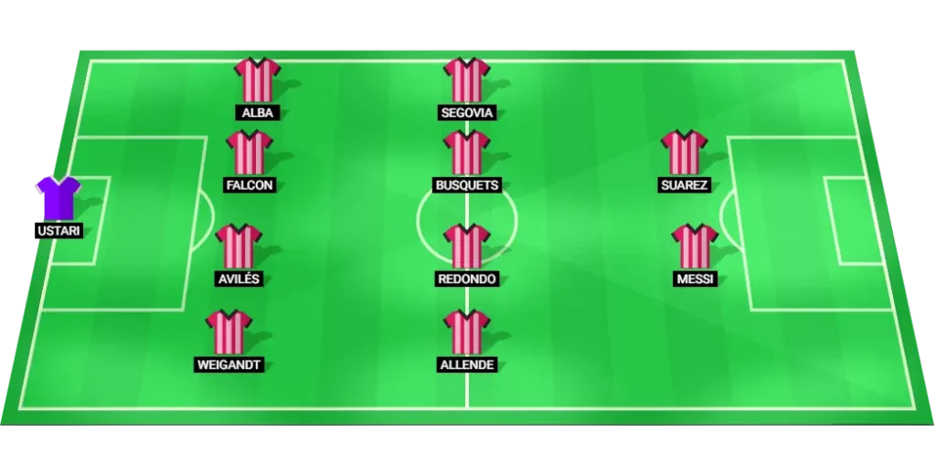 Inter Miami predicted lineup (4-4-2): Ustari (GK), Weigandt (DF), Avilés (DF), Falcon (DF), Alba (DF), Allende (MF), Redondo (MF), Busquets (MF), Segovia (MF), Messi (FW), Suarez (FW)