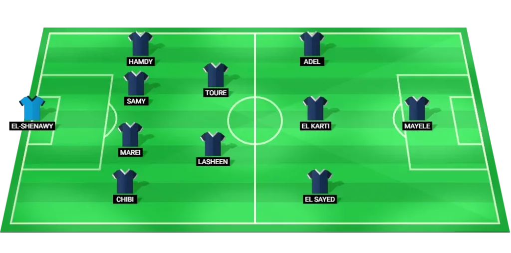 Pyramids FC Predicted Lineup: El-Shenawy (GK), Chibi (DF), Marei (DF), Samy (DF), Hamdy (DF), Lasheen (MF), Toure (MF), El Sayed (MF), El Karti (MF), Adel (MF), Mayele (FW)