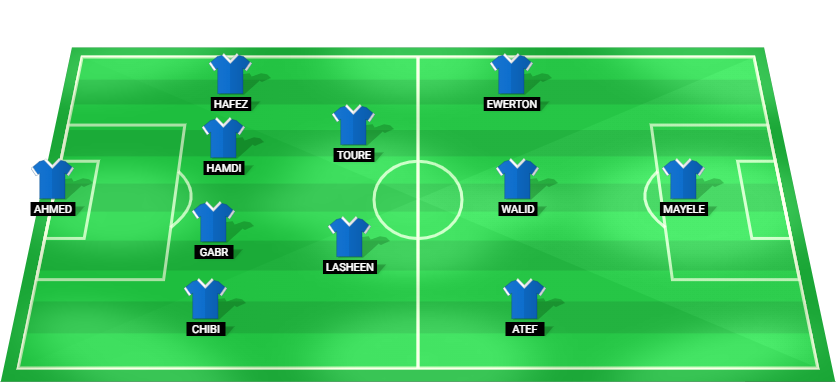 Ahmed (GK), Chibi (DF), Gabr (DF), Hamdi (DF), Hafez (DF), Lasheen (MF), Toure (MF), Atef (AM), Walid (AM), Ewerton (AM), Mayele (FW)