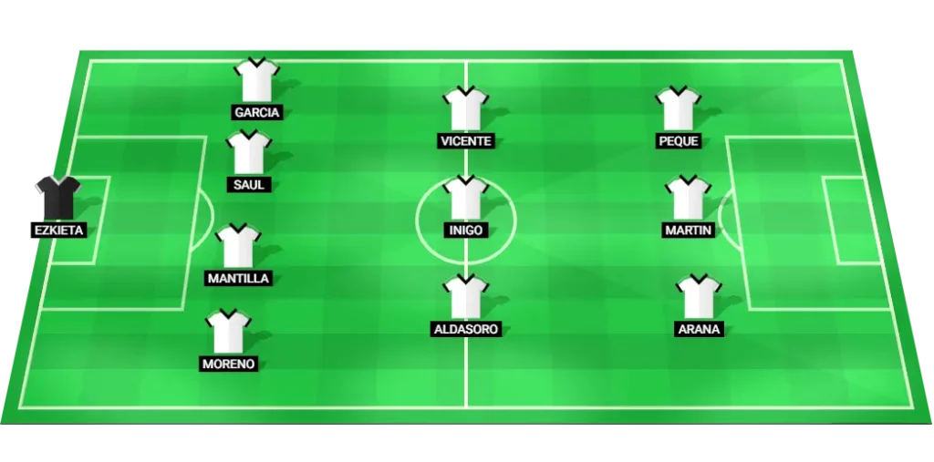 Racing Santander Predicted Lineup: Ezkieta (GK), Mantilla (DF), Moreno (DF), Garcia (DF), Saul (DF), Aldasoro (MF), Inigo (MF), Vicente (MF), Arana (FW), Martin (FW), Peque (FW)