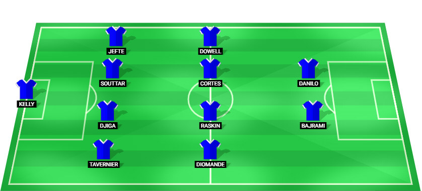 Kelly (GK), Tavernier (DF), Djiga (DF), Souttar (DF), Jefte (DF), Diomande (MF), Raskin (MF), Cortes (MF), Dowell (MF), Bajrami (MF), Danilo (FW).