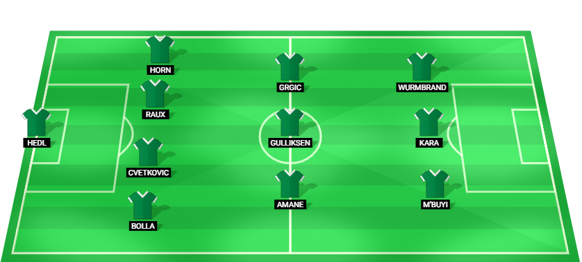 Hedl (GK), Bolla (DF), Cvetkovic (DF), Raux (DF), Horn (DF), Amane (MF), Gulliksen (MF), Grgic (MF), M’Buyi (FW), Kara (FW), Wurmbrand (FW)