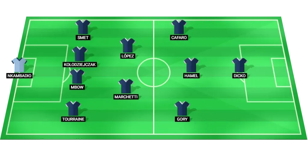 Nkambadio (GK), Tourraine (DF), Mbow (DF), Kolodziejczak (DF), Smet (DF), Marchetti (MF), López (MF), Gory (MF), Hamel (MF), Cafaro (MF), Dicko (FW).