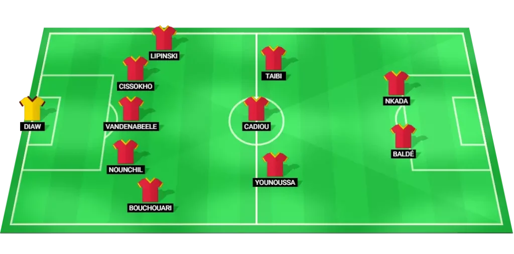 Diaw (GK), Bouchouari (DF), Nounchil (DF), Vandenabeele (DF), Cissokho (DF), Lipinski (DF), Younoussa (MF), Cadiou (MF), Taibi (MF), Baldé (FW), Nkada (FW).