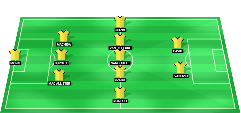 Moris (GK), Mac Allister (DF), Burgess (DF), Machida (DF), Khalaili (MF), Sadiki (MF), Vanhoutte (MF), Van De Perre (MF), Niang (MF), Ivanovic (FW), David (FW)