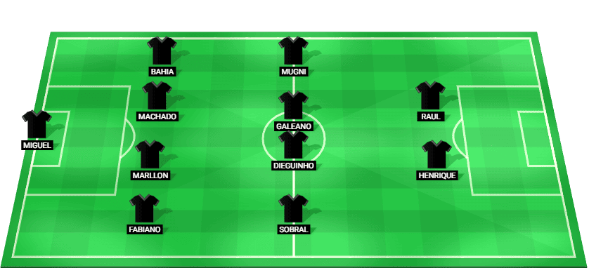 Fernando Miguel (GK), Fabiano (DF), Marllon (DF), Willian Machado (DF), Matheus Bahia (DF), Fernando Sobral (MF), Dieguinho (MF), Antonio Galeano (MF), Lucas Mugni (MF), Pedro Henrique (FW), Pedro Raul (FW).