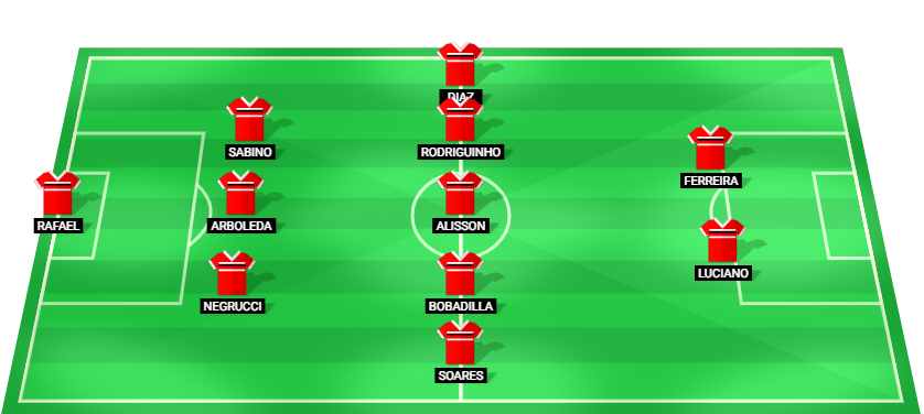Rafael (GK), Negrucci (DF), Arboleda (DF), Sabino (DF), Soares (MF), Bobadilla (MF), Alisson (MF), Rodriguinho (MF), Diaz (MF), Luciano (FW), Ferreira (FW)