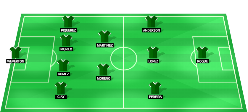 Weverton (GK), Giay (DF), Gomez (DF), Murilo (DF), Piquerez (DF), Moreno (MF), Martinez (MF), Pereira (AM), Lopez (AM), Anderson (AM), Roque (FW)