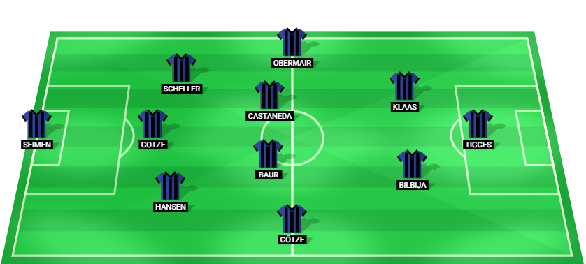 Seimen (GK), Hansen (DF), Gotze (DF), Scheller (DF), Curda (MF), Baur (MF), Castaneda (MF), Obermair (MF), Bilbija (AM), Klaas (AM), Tigges (FW).