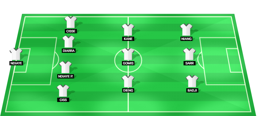 Ndiaye (GK), Ciss (DF), Ndiaye P. (DF), Diarra (DF), Cisse (DF), Dieng (MF), Gomis (MF), Kane (MF), Badji (FW), Sarr (FW), Niang (FW)