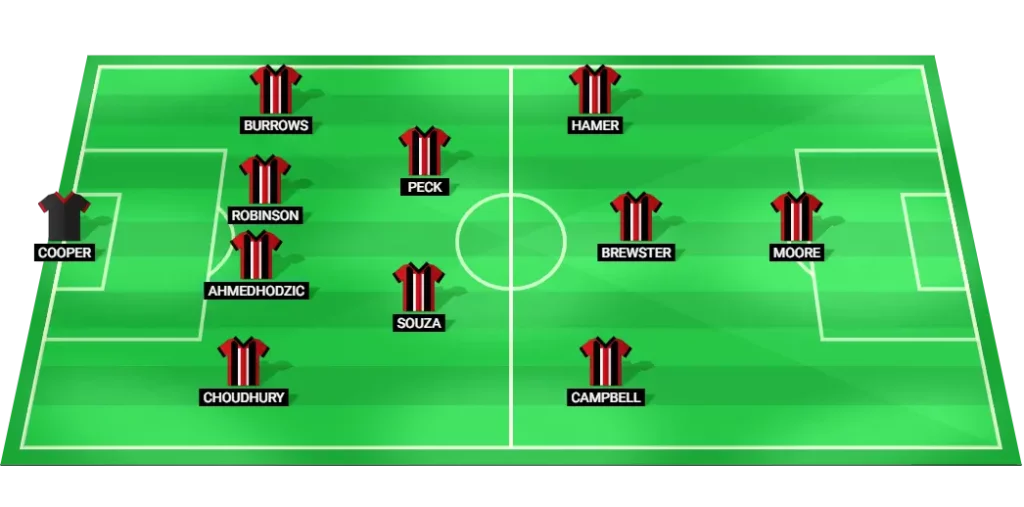 Michael Cooper (GK), Hamza Choudhury (DF), Anel Ahmedhodzic (DF), Jack Robinson (DF), Harrison Burrows (DF), Vinicius Souza (MF), Sydie Peck (MF), Tyrese Campbell (MF), Rhian Brewster (MF), Gustavo Hamer (MF), Kieffer Moore (FW)