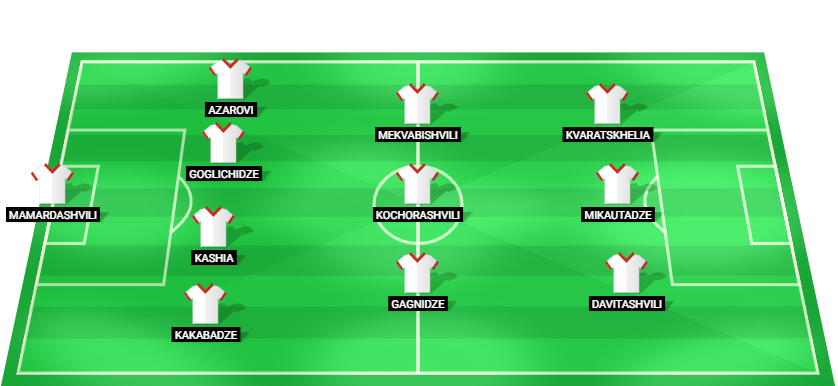 Mamardashvili (GK), Kakabadze (DF), Kashia (DF), Goglichidze (DF), Azarovi (DF), Gagnidze (MF), Kochorashvili (MF), Mekvabishvili (MF), Davitashvili (FW), Mikautadze (FW), Kvaratskhelia (FW)