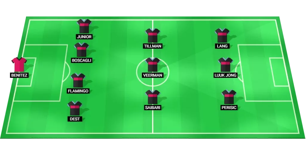 Walter Benitez (GK), Dest (DF), Flamingo (DF), Boscagli (DF), Junior (DF), Saibari (MF), Veerman (MF), Tillman (MF), Perisic (FW), Luuk Jong (FW), Lang (FW)