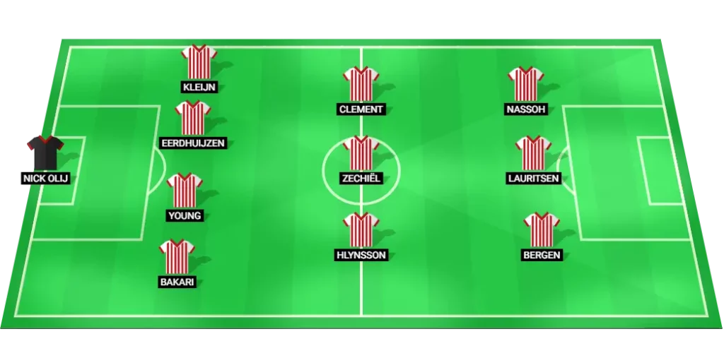 Nick Olij (GK), Bakari (DF), Young (DF), Eerdhuijzen (DF), Kleijn (DF), Hlynsson (MF), Zechiël (MF), Clement (MF), Bergen (FW), Lauritsen (FW), Nassoh (FW)
