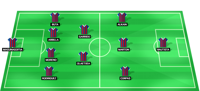 Magunagoitia (GK), Rodriguez (DF), Moreno (DF), Arbilla (DF), Buta (DF), Olaetxea (MF), Garrido (MF), Corpas (AM), Marton (AM), Alkain (AM), Bautista (FW).