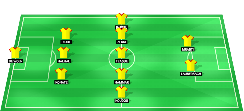 De Wolf (GK), Konate (DF), Halhal (DF), Diouf (DF), Koudou (MF), Hammar (MF), Teague (MF), Zekri (MF), Bafdili (MF), Lauberbach (FW), Mrabti (FW)