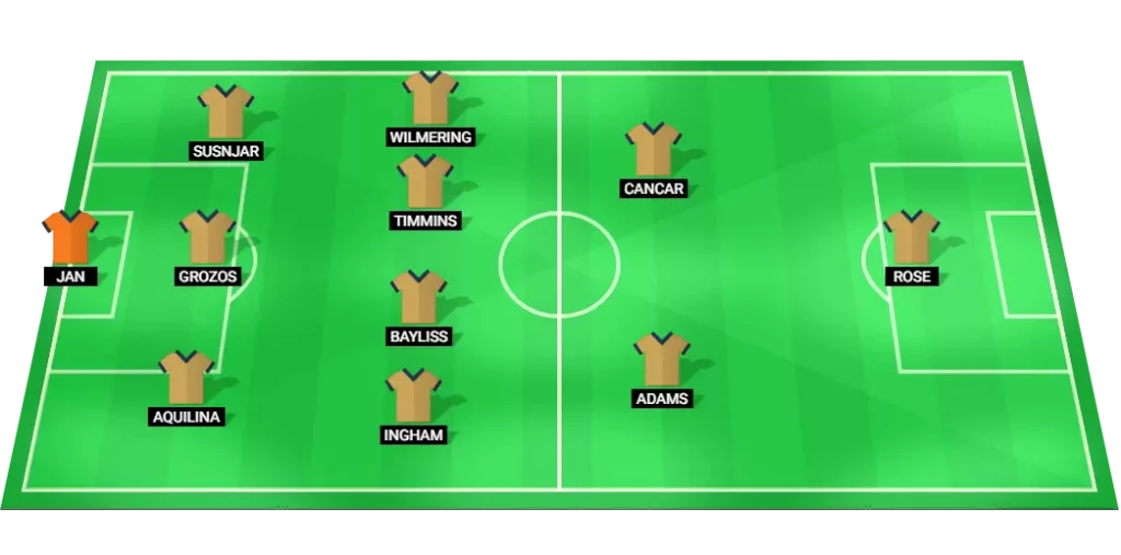 Jan (GK), Aquilina (DF), Grozos (DF), Susnjar (DF), Ingham (MF), Timmins (MF), Bayliss (MF), Wilmering (MF), Adams (MF), Cancar (MF) , Rose (FW)