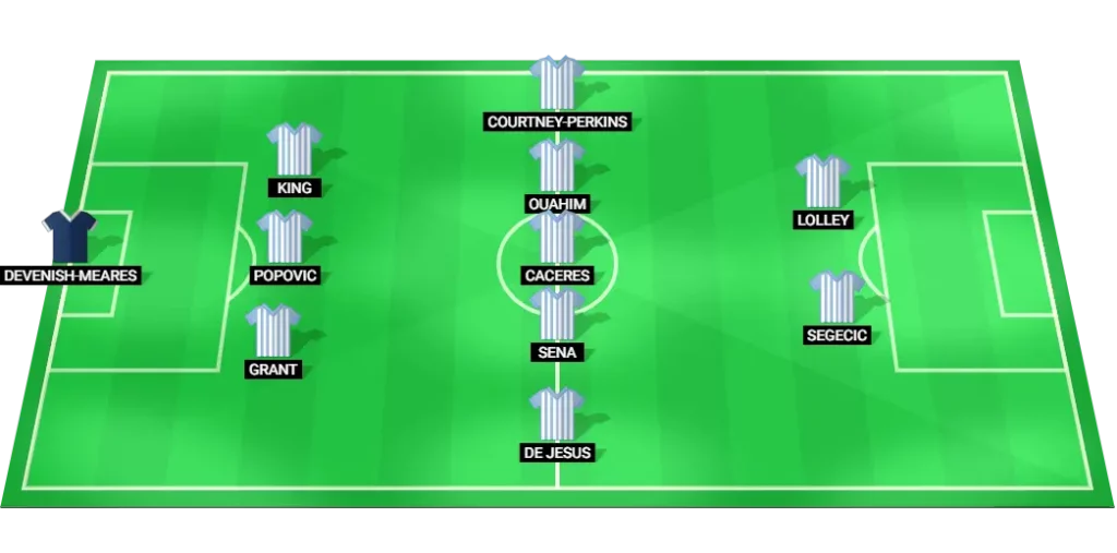 Devenish-Meares (GK), R. Grant (DF), Popovic (DF), King (DF), De Jesus (MF), Sena (MF), Caceres (MF), Ouahim (MF), Courtney-Perkins (MF), Segecic (FW), Lolley (FW)