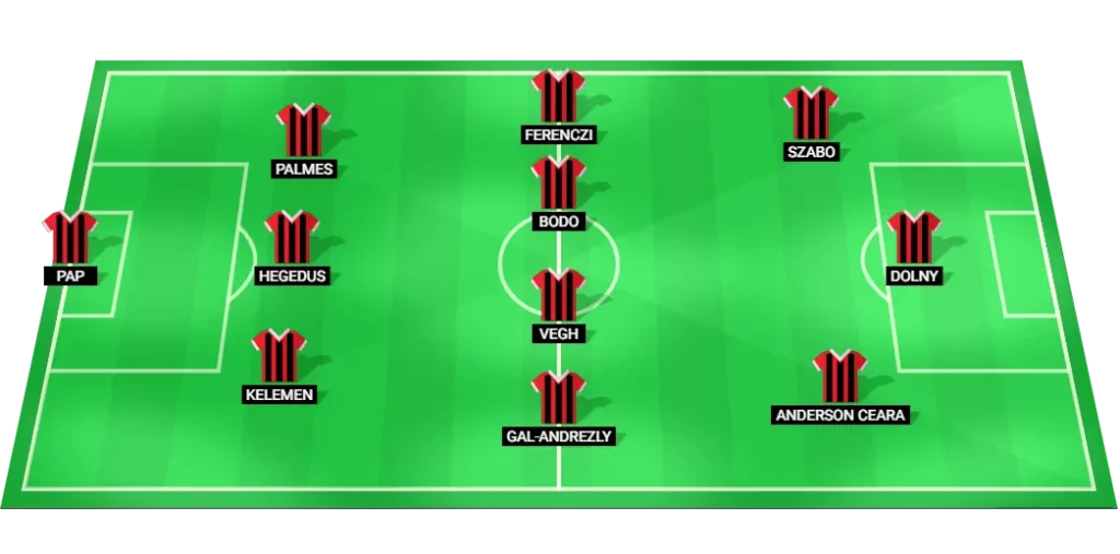 Csikszereda will aim to balance their attacking flair with defensive stability, as seen in their opener. Predicted lineup: Pap E. (GK), Kelemen D. (DF), Hegedus J. (DF), Palmes R. (DF), Gal-Andrezly P. (MF), Vegh B. (MF), Bodo E. (MF), Ferenczi J. (MF), Anderson Ceara (FW), Dolny J. (FW), Szabo B. (FW).