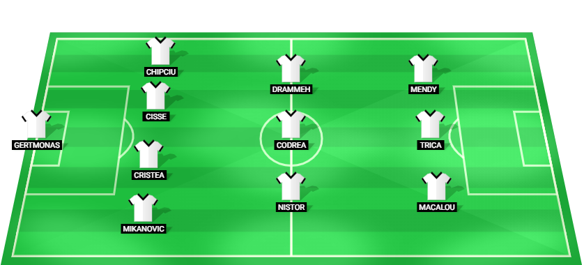 Gertmonas (GK), Mikanovic (DF), Cristea (DF), Cisse (DF), Chipciu (DF), Nistor (MF), Codrea (MF), Drammeh (MF), Macalou (FW), Trica (FW), Mendy (FW)