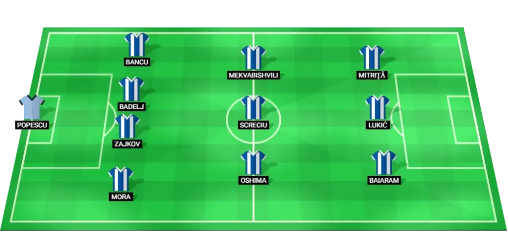 Craiova is likely to stick with their 4-3-3 formation, relying on Mitriță’s flair in attack.