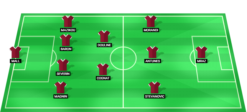 Mall (GK), Magnin (DF), Severin (DF), Baron (DF), Mazikou (DF), Cognat (MF), Douline (MF), Stevanovic (AM), Antunes (AM), Morandi (AM), Mraz (FW).