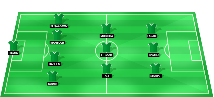 Hamdy (GK), Nader (DF), Hashem (DF), Mansour (DF), El Saadawy (DF), Ali (MF), El Saaiy (MF), Mugisha (MF), Sharaf (FW), Bambo (FW), Farag (FW).
