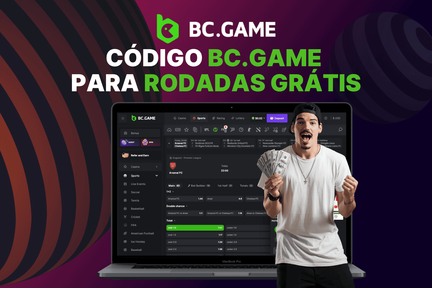 Os bônus oferecidos pelo BC Game destinam-se apenas a jogadores recreativos. Os participantes devem ter mais de 18 anos de idade. A elegibilidade do bônus está sujeita aos Termos e Condições do BC.game. Este site contém links afiliados e podemos receber uma pequena comissão pelo seu registro através desses links. Sempre jogue com responsabilidade. Por favor, jogue dentro dos seus limites e lembre-se, os bônus não são garantia de vitória.