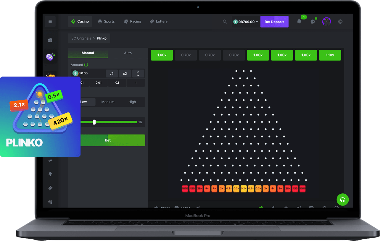 - Бонусы за первый депозит: Если вы новичок на BC.Game, вам могут быть предложены эксклюзивные бонусы на первый депозит для игры в Plinko.