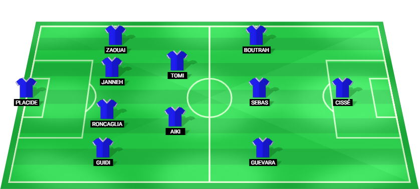 Placide (GK), Guidi (DF), Roncaglia (DF), Janneh (DF), Zaouai (DF), Aiki (MF), Tomi (MF), Guevara (AM), Sebas (AM), Boutrah (AM), Cissé (FW).