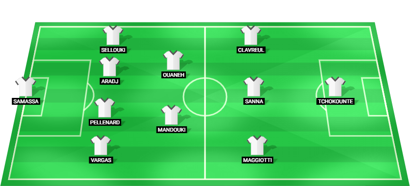 Samassa (GK), Vargas (DF), Pellenard (DF), Aradj (DF), Sellouki (DF), Mandouki (MF), Ouaneh (MF), Maggiotti (AM), Sanna (AM), Clavreul (AM), Tchokounte (FW).