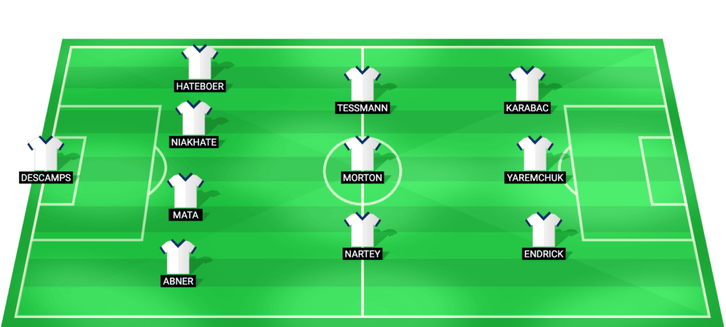 Descamps (GK), Abner (DF), Mata (DF), Niakhate (DF), Hateboer (DF), Nartey (MF), Morton (MF), Tessmann (MF), Endrick (FW), Yaremchuk (FW), Karabac (FW).