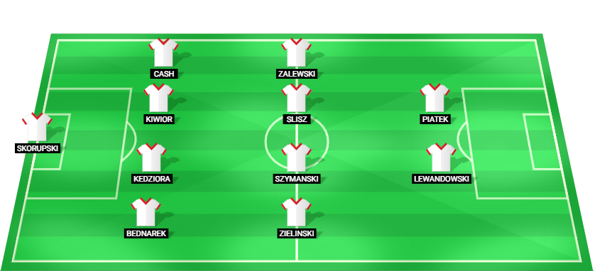 Skorupski (GK), Bednarek (DF), Kedziora (DF), Kiwior (DF), Cash (DF), Zielinski (MF), Szymanski (MF), Slisz (MF), Zalewski (MF), Lewandowski (FW), Piatek (FW)