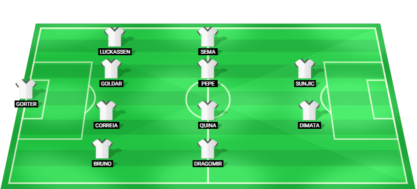 Gorter (GK), Bruno (DF), Correia (DF), Goldar (DF), Luckassen (DF), Dragomir (MF), Quina (MF), Pepe (MF), Sema (MF), Dimata (FW), Sunjic (FW)
