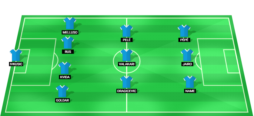 Ivkusic (GK), Goldar (DF), Kvida (DF), Rus (DF), Melluso (DF), Dragicevic (MF), Valakari (MF), Pelé (MF), Name (FW), Jairo (FW), Pêpê (FW).