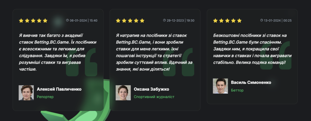 Гравці у відгуках BC.Game діляться, що ми завжди готові допомогти, навіть коли щось іде не так. Наприклад, один користувач розповів, як після затримки з депозитом наша підтримка вирішила питання за 40 хвилин. Інший гравець подякував за швидке пояснення умов бонусу, що допомогло йому забрати виграш без зайвих клопотів. Ми цінуємо кожен відгук BC Game, адже він допомагає нам ставати кращими. Багато хто любить наші щоденні безкоштовні оберти та турніри з солідними призами, які додають грі драйву.