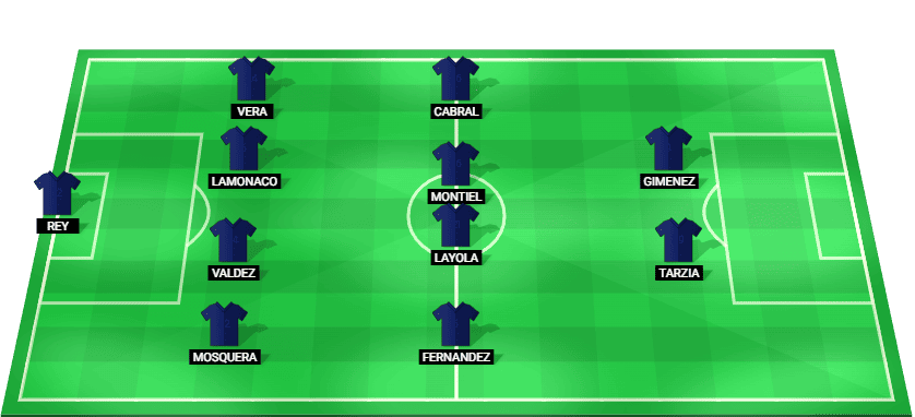 Rey (GK), Mosquera (DF), Valdez (DF), Lamonaco (DF), Vera (DF), Fernandez (MF), Layola (MF), Montiel (MF), Cabral (MF), Tarzia (FW), Gimenez (FW)